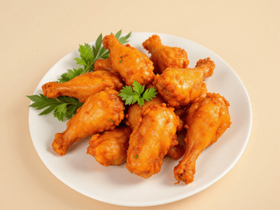 Ayam Goreng Berempah Drumettes is a beloved Malaysian fried chicken dish, renowned for its aromatic spices and crispy texture. Drawing from Malaysia’s rich multicultural culinary heritage, this dish is typically enjoyed at lunch or as part of a festive spread. The term 'berempah' means 'spiced', reflecting the bold use of fresh local herbs and spices such as serai (lemongrass), daun kari (curry leaves), and kunyit (turmeric), which infuse the chicken with depth and fragrance. Drumettes, the meaty part of the chicken wing, are the perfect canvas for absorbing the marinade’s complex flavors without being overly heavy. In Malaysian households, Ayam Goreng Berempah is often prepared for family gatherings or special occasions. The vibrant blend of spices offers a sensory experience that is both comforting and invigorating. This healthier version uses less oil and focuses on local, natural ingredients, making it suitable for calorie-conscious eaters who do not want to compromise on authentic taste. The result is a dish that is delicious, fragrant, and representative of Malaysia's unique food culture.
