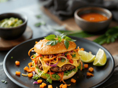 Choosing a plant-based burger with wholemeal buns reduces saturated fat and increases fiber, supporting heart health and digestion. The use of low-fat mayonnaise and minimal oil keeps calories in check, while local vegetables enhance micronutrient content. This recipe is tailored for calorie-conscious individuals and is easily adaptable for various health needs. Enjoying this burger means indulging in flavor without compromising nutrition.