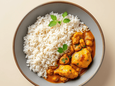 Store leftover chicken curry in an airtight container in the refrigerator for up to 2 days. Reheat gently on the stove, adding a splash of water if needed to loosen the gravy. Rice should be stored separately and consumed within 24 hours.