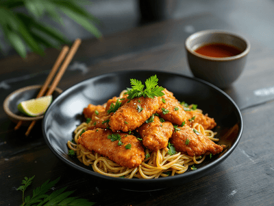 Vegetarian Chicken Tenders are a delicious and wholesome take on a Malaysian favorite, blending local spices and fresh herbs to create a satisfying lunch option. Inspired by Malaysia's multicultural cuisine, this meat-free version replaces chicken with high-protein plant-based alternatives, marinated in aromatic ingredients like serai (lemongrass), kunyit (turmeric), and daun pandan (pandan leaves). The result is a flavorful, crispy tender with authentic Malaysian character, perfect for those seeking a vegetarian lunch without compromising taste or tradition. Malaysians love their finger foods, especially at lunch or during festive gatherings. These vegetarian 'tenders' capture the essence of Malaysian street snacks, often enjoyed with fragrant nasi lemak or as part of a diverse spread at family events. By using local ingredients such as santan (coconut milk) and rempah (spice paste), this recipe pays tribute to the country’s culinary heritage, making it ideal for health-conscious eaters who appreciate bold flavors and plant-based nutrition.