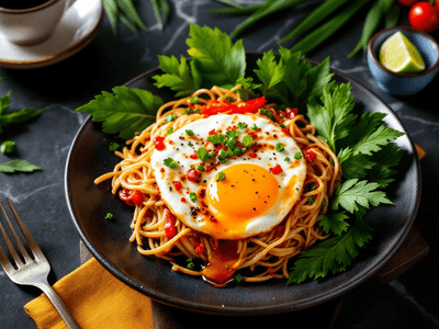 Fried Egg with Soy Sauce, known locally as 'Telur Goreng Kicap', is a beloved staple in Malaysian households. This simple yet flavorful dish beautifully captures the multicultural essence of Malaysian cuisine, blending Chinese soy sauce with local ingredients like cili padi (bird’s eye chili) and bawang merah (shallots). Popular as a quick lunch or as part of a hearty Malaysian breakfast, each bite offers a satisfying combination of savory, slightly sweet, and umami flavors, making it a comfort food across generations. The dish is not only quick to prepare but also highly adaptable, suitable for vegetarians and easily modified for different dietary needs. Its origins are humble, often enjoyed with a plate of warm nasi putih (steamed rice) and a side of ulam (local herbs). The use of fresh ingredients such as pandan leaves or lemongrass, when available, elevates the aroma and authenticity, providing a taste that is uniquely Malaysian. This healthy version uses minimal oil, making it an excellent choice for calorie-conscious eaters who want to enjoy traditional flavors without compromising on nutrition.