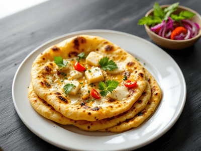 Garlic Cheese Naan is a beloved staple in Malaysian North Indian restaurants, blending the aromatic flavors of bawang putih (garlic) and creamy cheese into a fluffy, soft flatbread. This naan has become an iconic part of Malaysia’s multicultural cuisine, often served alongside dishes like dhal, tandoori ayam, or rich kari kambing. The addition of locally sourced ingredients such as daun bawang (spring onion) adds a Malaysian twist, making it a popular choice during lunch gatherings and festive occasions. What sets Malaysian Garlic Cheese Naan apart is the subtle infusion of fresh herbs and the use of low-fat cheese for a healthier balance. The naan is traditionally cooked in a tandoor but can be easily prepared on a pan or oven at home. Its golden crust, mild garlicky aroma, and gooey cheese center make it irresistible, while its simplicity makes it accessible for both novice and experienced cooks. Enjoyed hot off the grill, it’s perfect for those seeking an authentic yet health-conscious Malaysian flatbread experience.