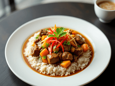 Vegetarian Indonesian Beef Broth, locally known as 'Sup Daging Indonesia' (Vegetarian), is a beloved staple in Malaysian multicultural cuisine, especially among communities seeking hearty, flavorful, and meat-free options. This dish is a creative adaptation, using wholesome plant-based ingredients that mirror the rich, aromatic profile of the original beef broth. The soup is infused with local spices such as serai (lemongrass), daun pandan, and a medley of fresh vegetables, capturing the essence of Malaysian comfort food. Perfect for lunch, this broth is light yet satisfying, making it suitable for those who are health-conscious or following a vegetarian diet. The natural sweetness of carrots, earthiness of mushrooms, and the gentle heat of white pepper come together in a clear, nourishing broth. The use of local ingredients like daun bawang (spring onion) and halia (ginger) reflects Malaysia's love for fresh flavors and vibrant culinary traditions. Whether enjoyed during festive gatherings or as a comforting midday meal, this vegetarian version honors the roots of Indonesian-style soups, with a Malaysian twist that suits modern healthy lifestyles.
