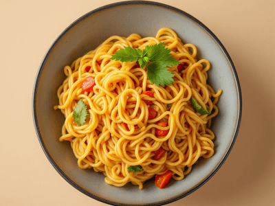 Mamee Curry Noodles are a beloved Malaysian lunch staple, offering a comforting bowl of spicy, aromatic noodles steeped in a rich curry broth. Originating from the vibrant multicultural food scene of Malaysia, this dish draws inspiration from Malay, Chinese, and Indian culinary traditions. The combination of fragrant spices, santan (coconut milk), and locally sourced vegetables like taugeh (bean sprouts) and daun limau purut (kaffir lime leaves) creates a uniquely Malaysian flavor profile. The Mamee brand is iconic in Malaysia, symbolizing the country’s love for instant noodles, but homemade versions elevate the dish by using fresh, wholesome ingredients. Malaysians enjoy Mamee Curry Noodles for its bold taste and versatility—whether served for lunch at hawker stalls or prepared at home for family gatherings. The curry base is enhanced with lemongrass, turmeric, and chilli, reflecting the region's passion for vibrant spices. This healthy, vegetarian adaptation uses nutrient-rich vegetables and wholegrain noodles, making it a guilt-free option for calorie-conscious eaters. With its spicy kick and creamy santan, Mamee Curry Noodles epitomize the warmth and hospitality of Malaysian cuisine, perfect for anyone seeking authentic flavors and a nourishing meal.