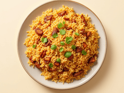 This vegetarian Nasi Goreng Daging is high in fiber from brown rice and a variety of local vegetables, supporting digestive health. Tempeh provides plant-based protein, while lemongrass and pandan add antioxidants. The dish is low in saturated fat and cholesterol-free, making it heart-friendly. It also supplies essential vitamins like A, C, and B-complex, plus minerals such as potassium and magnesium.