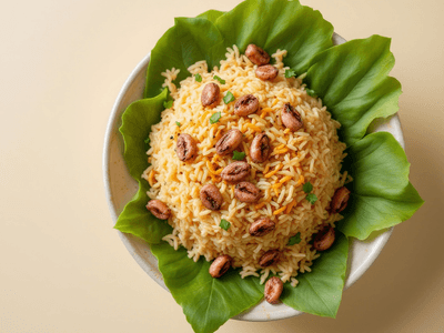 Nasi Goreng Kampung with Anchovies is a beloved Malaysian village-style fried rice, celebrated for its rustic flavors and aromatic ingredients. Rooted deeply in Malaysia’s multicultural cuisine, this dish brings together local staples such as fragrant pandan leaves, fiery cili padi (bird’s eye chili), and crunchy ikan bilis (anchovies). Traditionally enjoyed in kampungs (villages) across Malaysia, this hearty dish offers a delightful balance of spicy, savory, and umami notes, making it a staple in Malaysian homes, warungs, and hawker stalls. The unique taste comes from the combination of fresh herbs like lemongrass, hints of belacan (fermented shrimp paste), and the crispy texture of fried anchovies. Often garnished with ulam (local salad greens) and cucumber, Nasi Goreng Kampung is not only flavorful but also visually appealing. Its simplicity, adaptability, and use of wholesome, locally sourced ingredients make it a great choice for those seeking a health-conscious Malaysian lunch. Whether shared among family or served as a quick meal, this dish embodies the warmth and communal spirit of Malaysian food culture.