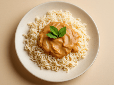 This dish is a health-conscious choice because it uses whole ingredients, avoids deep-frying, and focuses on plant-based protein from peanuts. The sauce is made with minimal added sugar, and the rice is compressed without oil. It’s suitable for vegetarian diets and can be portioned easily to fit calorie goals, making it ideal for lunch or as part of a balanced meal plan. The inclusion of local herbs and spices boosts its nutritional value.