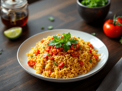 Nasi Tomato is a beloved Malaysian rice dish known for its vibrant color, aromatic spices, and subtle tangy-sweet flavor. Rooted in Malaysia’s multicultural heritage, this dish often graces festive tables and special occasions, especially in Malay households and at kenduri (feasts). Unlike regular nasi putih (white rice), Nasi Tomato is cooked with tomato purée, santan (coconut milk), and local aromatics like pandan leaves, bunga cengkih (cloves), and kayu manis (cinnamon), giving it a truly unique Malaysian character. This vegetarian, health-conscious version elevates classic Nasi Tomato by using wholesome ingredients and reducing saturated fat while preserving authentic taste. The result is a fluffy, fragrant rice that pairs beautifully with acar (pickled vegetables) or dalca sayur (vegetable curry). It’s perfect for lunch or gatherings, offering a nutritious, comforting meal that celebrates Malaysia’s culinary diversity and local produce like tomato, lemongrass, and pandan.