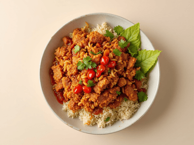 Tempeh Goreng with Sambal is a classic vegetarian Malaysian dish that beautifully showcases the country's multicultural cuisine. Tempeh, a nutritious fermented soybean cake, is sliced and lightly fried until golden and crispy, then served with a vibrant sambal sauce made from local ingredients like cili merah (red chilies), bawang putih (garlic), bawang merah (shallots), and a touch of asam jawa (tamarind). This dish is a staple in many Malaysian households, particularly among the Malay and Indian communities who appreciate both its flavour and plant-based protein content. What makes Tempeh Goreng with Sambal so special is its bold taste, versatility, and the use of indigenous herbs such as serai (lemongrass) and daun limau purut (kaffir lime leaf). The sambal brings a spicy, tangy kick that perfectly balances the earthiness of the tempeh. It is commonly enjoyed as a lunch dish, paired with steamed nasi (rice) or fresh ulam (herbs), making it a wholesome and satisfying meal. Tempeh Goreng with Sambal is not only delicious but also aligns with modern health-conscious lifestyles, offering a nutritious alternative to meat-based dishes.