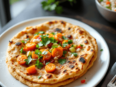 Whole wheat naan is a wholesome source of complex carbohydrates, dietary fiber, and plant-based protein. The inclusion of low-fat yogurt adds probiotics and calcium, supporting digestive and bone health. Using olive oil instead of traditional ghee lowers saturated fat content, making this naan suitable for heart-healthy diets. It provides B-vitamins, iron, and magnesium, supporting energy levels and overall wellness.